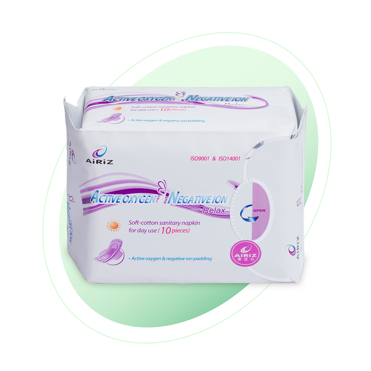 La toalla higiénica de día Airiz de Tiens es una compresa sanitaria de uso diurno diseñada con tecnología de oxígeno activo e iones negativos para el cuidado íntimo femenino. Ofrece alta absorción, permeabilidad y un diseño ultra delgado, con el objetivo de prevenir bacterias, eliminar olores y brindar frescura durante el periodo menstrual.